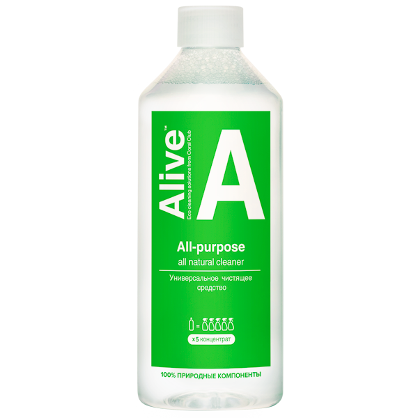 Alive A чистящее средство — концентрированное средство для качественной чистки и обезжиривания любых поверхностей и изделий из стекла, алюминия, стали, нержавеющей стали, ламината, пластика, дерева, кожи, хрома.