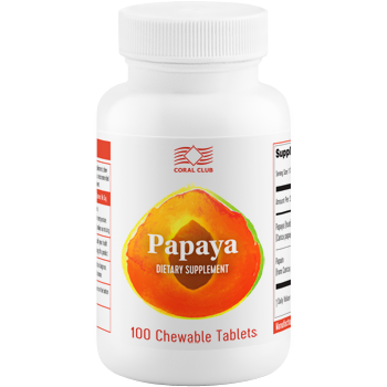 Содержит легкоусвояемые сахара, белки, витамины С, В1, В2, каротин, минералы (калий, магний, кальций) и необходимые для пищеварения ферменты. Папайя идеально восстанавливает силы, бодрость, активность. Это отличный диетический продукт для людей, следящих за своим весом. Содержащиеся в папайе ферменты обеспечивают переваривание белковой пищи, расщепляя белки до аминокислот, способствует их лучшей усвояемости организмом. Ведь именно качественный белок необходим как основной строительный материал для новых клеток и тканей, в том числе слизистых ЖКТ.